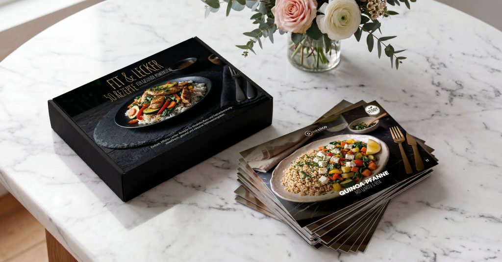 Mehr Erfolg durch gesunde Ernährung – mit unserer hochwertigen Rezeptkarten-Box für Ihre Mitglieder und Neukunden.
