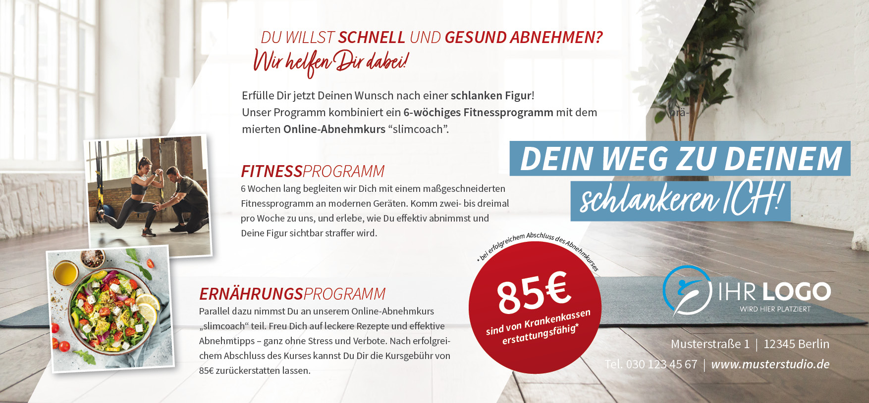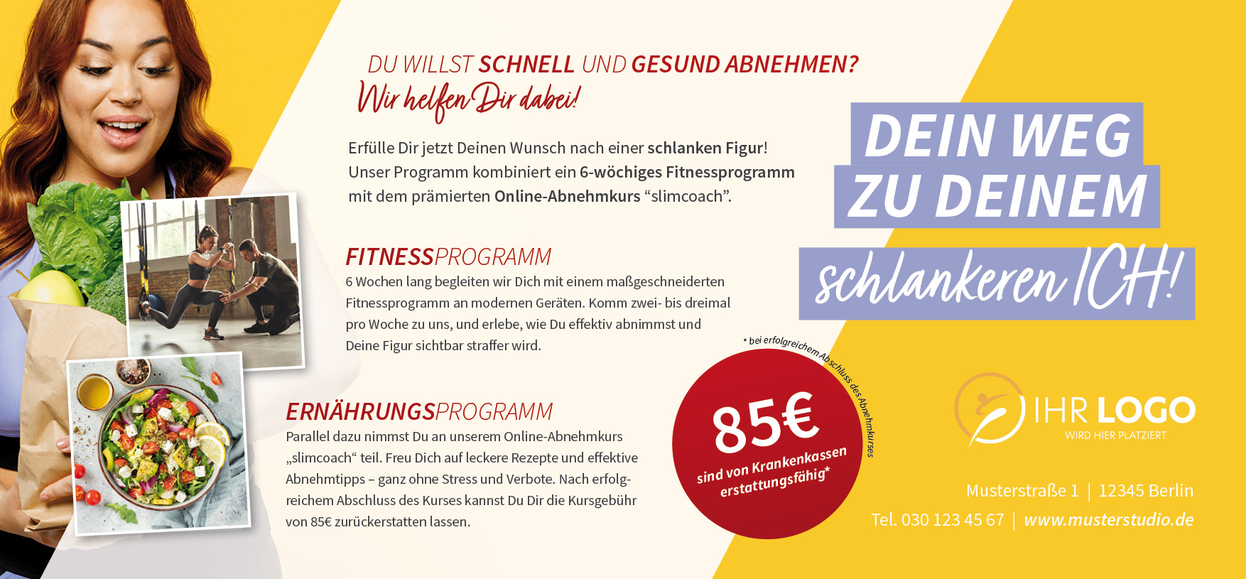 Die MaxiCard XL (29,7 cm Breite x 13,8 cm Höhe) ist das wichtigste externe Werbemittel der Kampagne „Dein Weg zu Deinem schlankeren ICH!“