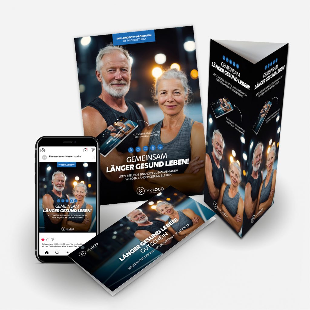 Mit unserer Kampagne „Länger gesund leben“ greifen Sie genau diesen Zeitgeist auf und positionieren Ihr Studio als modernen Gesundheitsanbieter, der langfristige Lebensqualität in den Mittelpunkt stellt.