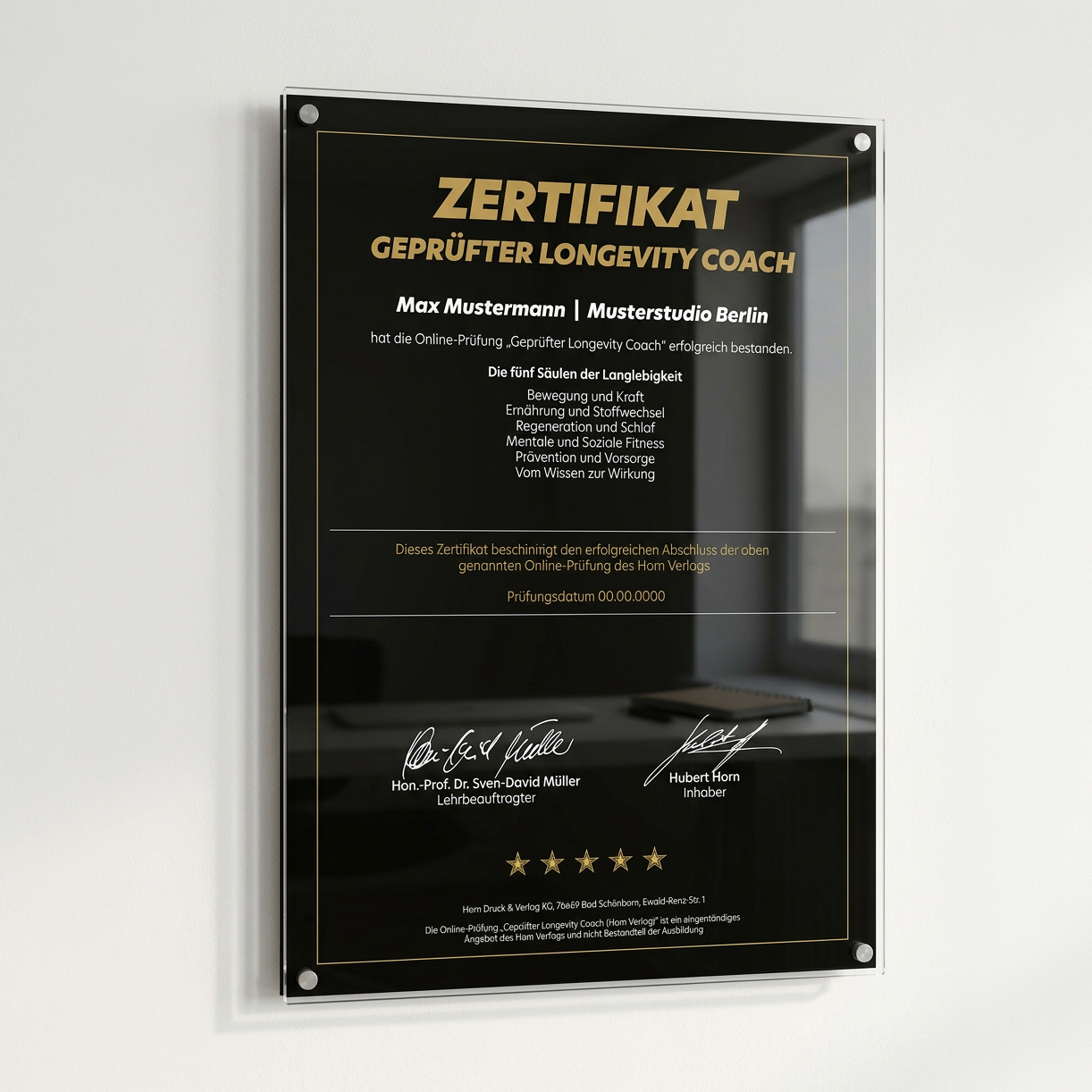 • Urkunde „Geprüfter Longevity Coach” bei Bestehen (mind. 80%)