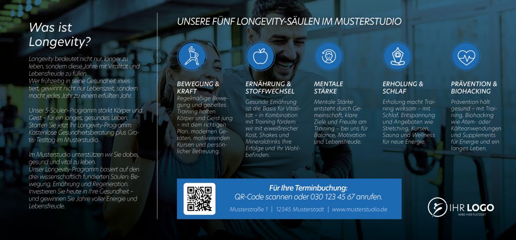 Die MaxiCards eignen sich ideal zur gezielten Verteilung in Ihrem Einzugsgebiet – per Postwurfsendung, über Prospektverteiler oder als Zeitungsbeilage. So erreichen Sie gesundheitsbewusste Menschen direkt zu Hause und machen sie auf Ihr Longevity-Programm aufmerksam.