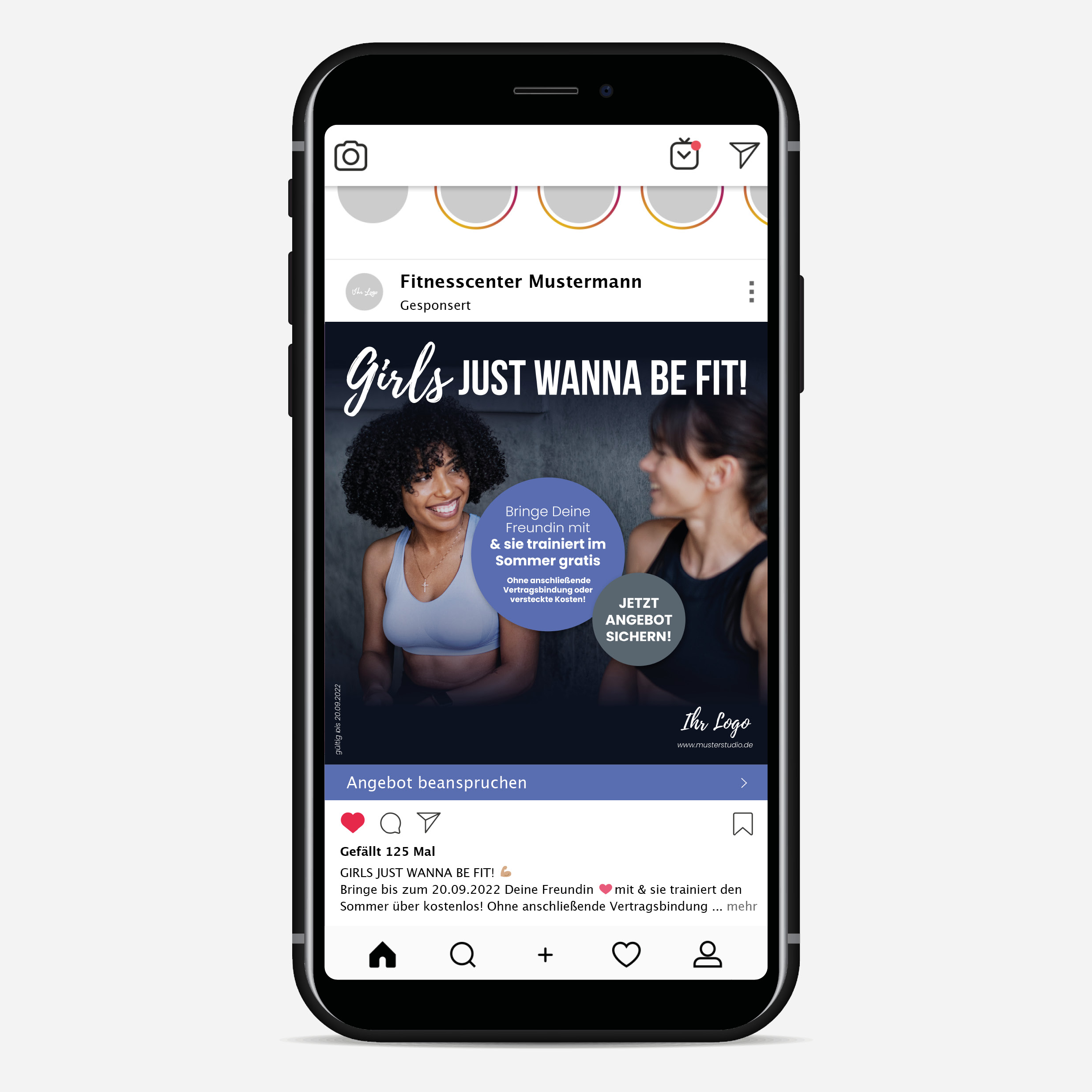 Das Social Media Paket enthält alles, was Sie für eine effiziente Online-Bewerbung von “GIRLS JUST WANNA BE FIT” benötigen. Kleine Änderungen an den Texten sind im Preis enthalten.