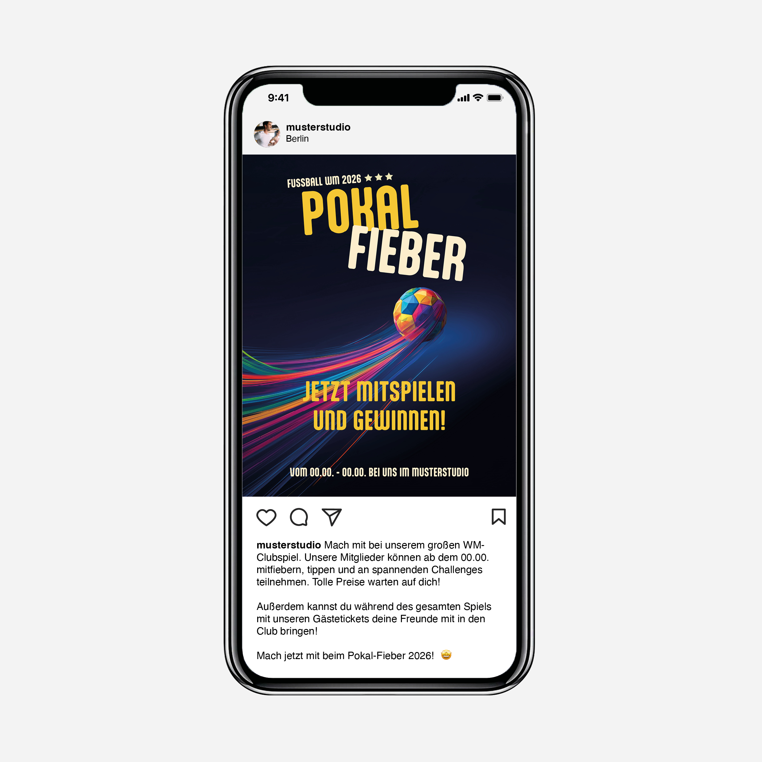 Mit einem Post auf Instagram und Facebook machen Sie Ihre Mitglieder auf das Spiel aufmerksam und animieren zur Anmeldung.