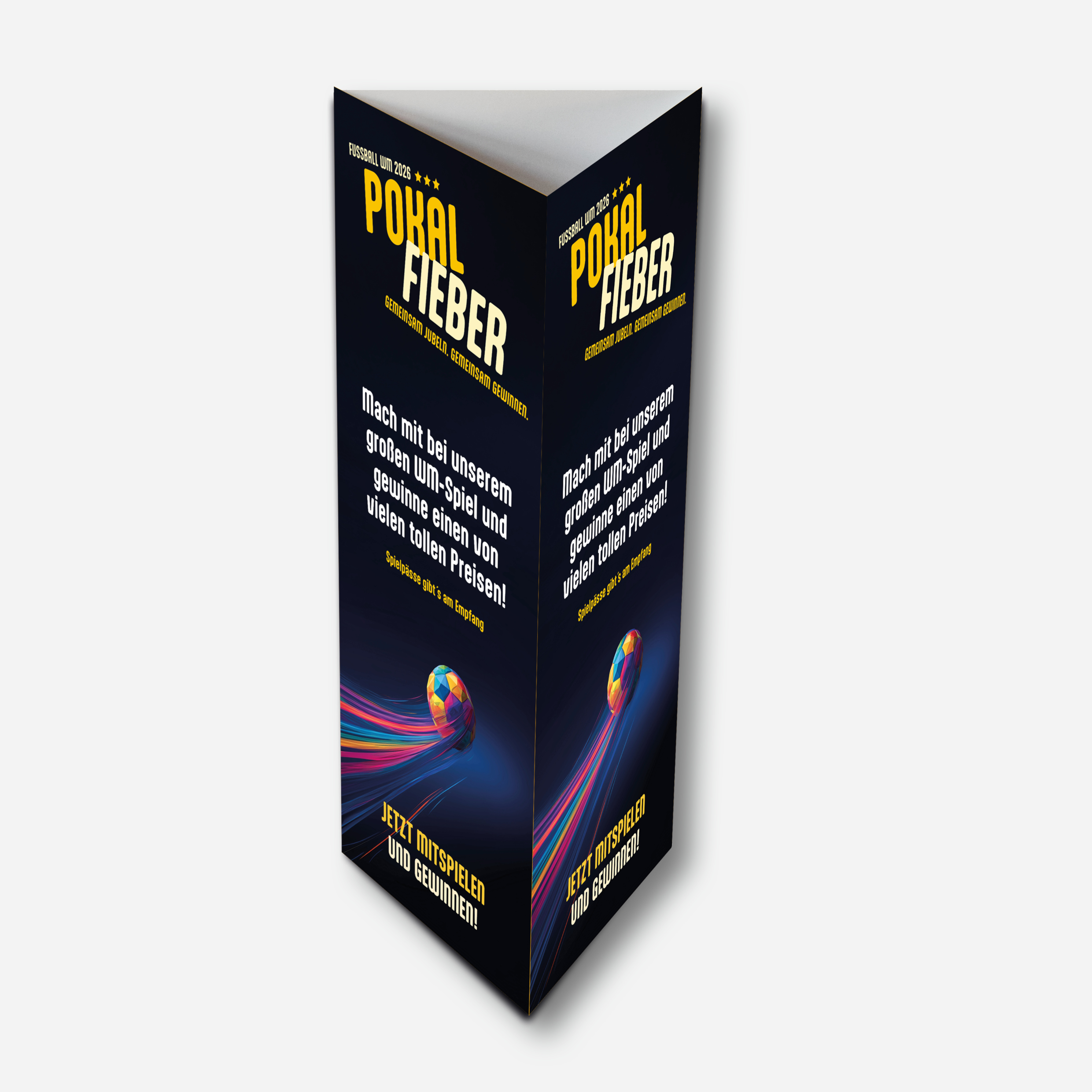 Der auffällige Aufsteller im Prisma-Look kann an der Rezeption, im Bistro-Bereich oder überall dort aufgestellt werden, wo die Mitglieder häufig vorbeikommen.