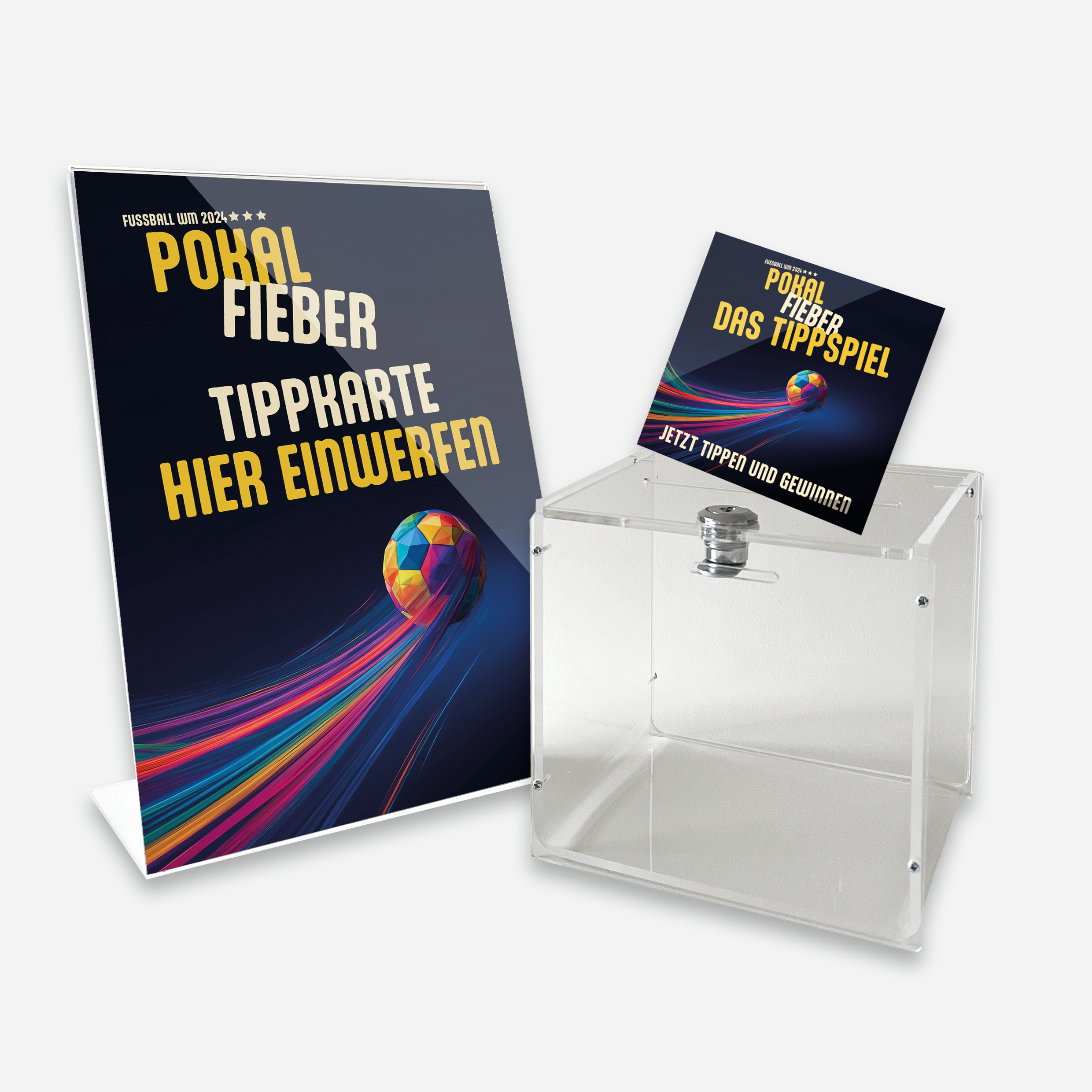 | Transparente Box inkl. Aufsteller für Tippspiel-Karten | 1 | 1 | 1 | 1 | 1 | 1 |