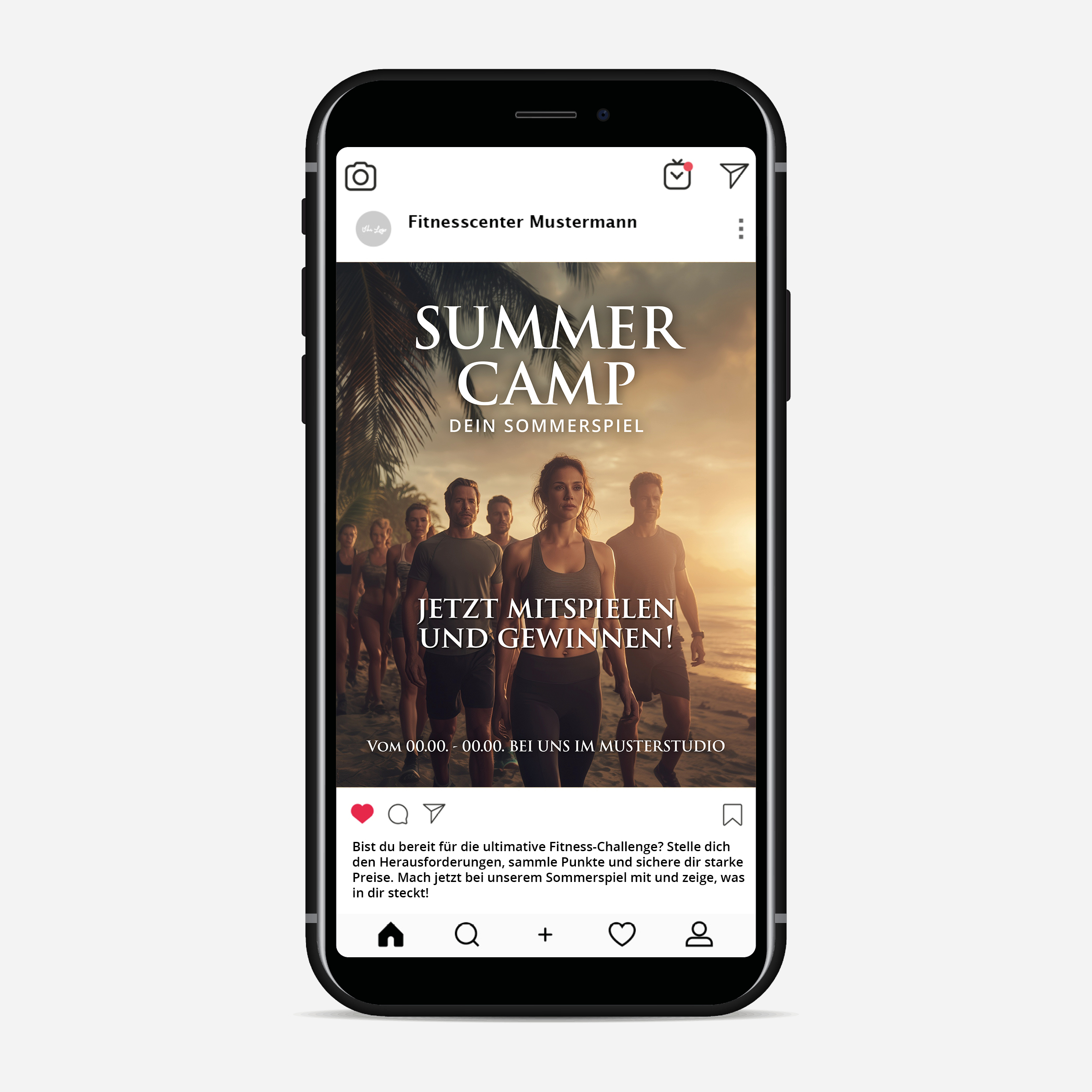 Mit einem Post auf Instagram und Facebook machen Sie Ihre Mitglieder auf das Spiel aufmerksam und animieren zur Anmeldung.